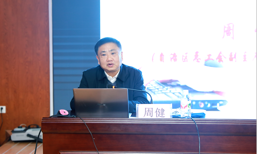 自治区总工会副主席、自治区教育工会主席周健作专题讲座