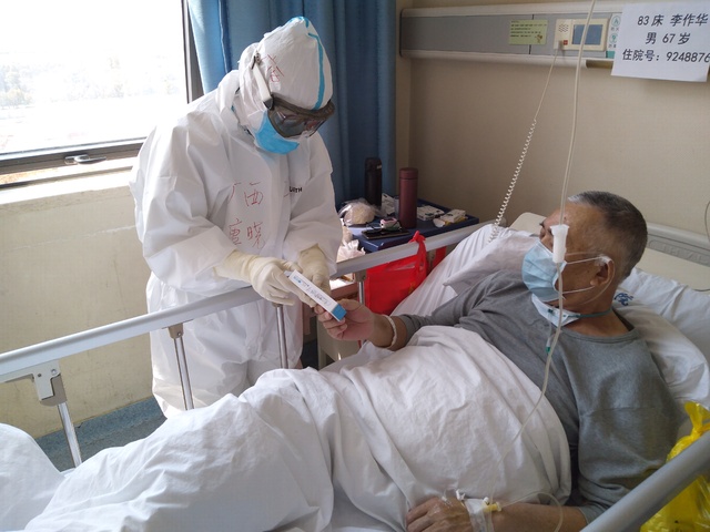 唐晓在武汉协和医院西院救助新冠肺炎患者。