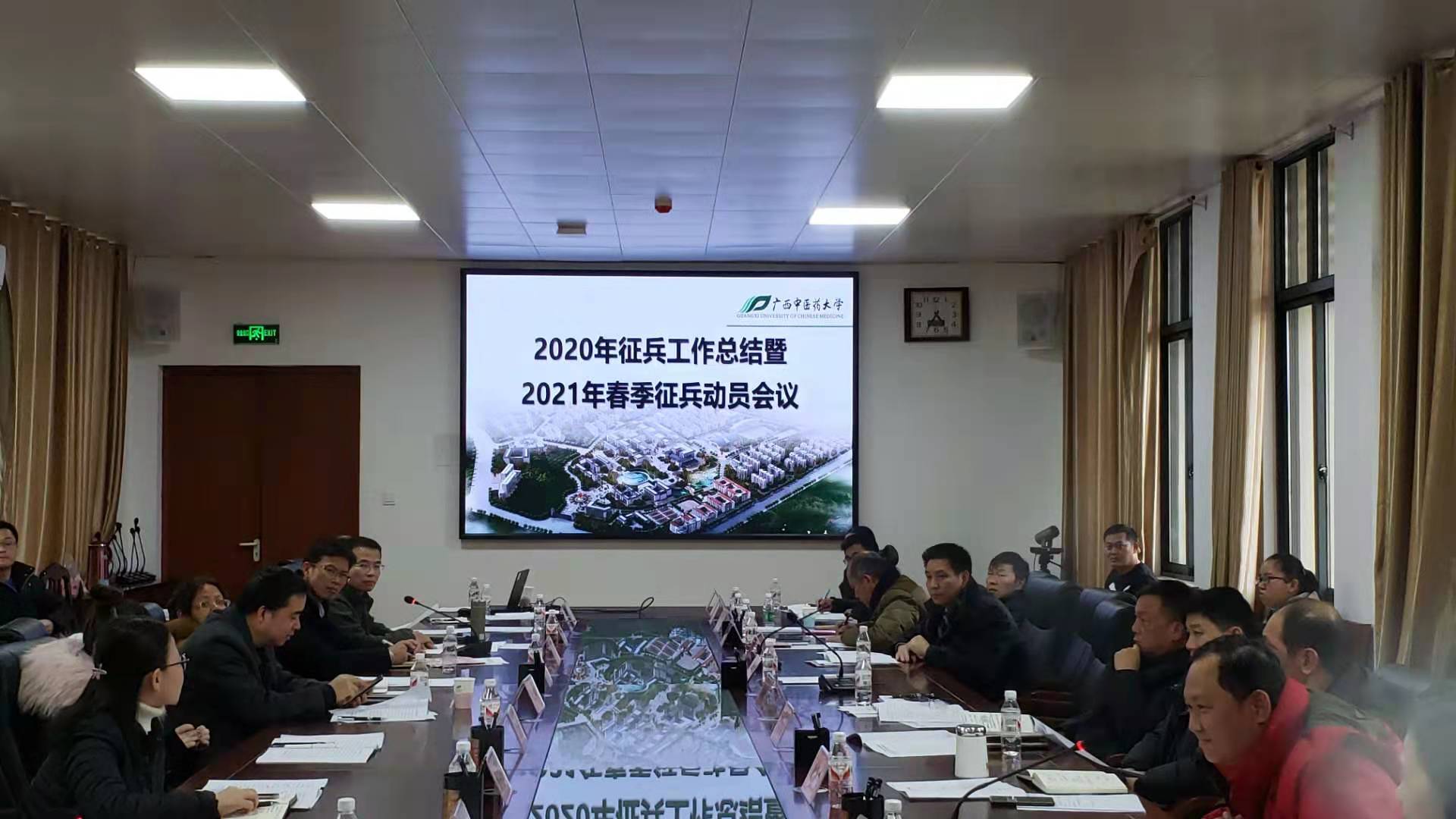 会上,张春传达了自治区征兵办、自治区教育厅相关文件及会议精神,学校征兵工作站就我校2020年征兵工作进行了汇报,并对2021年春季征兵工作进行了部署。会议还对2020年度学校征兵工作先进单位基础医学院、药学院、公共管理学院、高等职业技术学院进行了表彰。