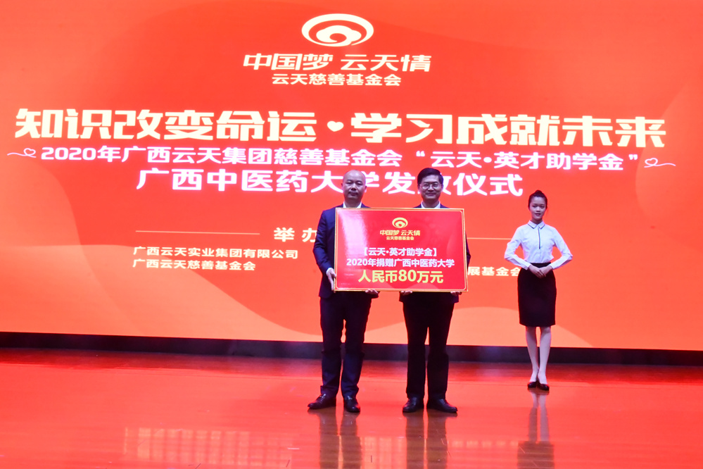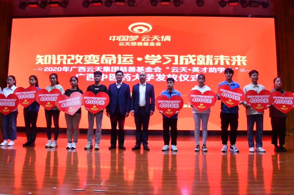 12月29日下午,我校在仙葫校区举行2020年“云天·英才助学金”发放仪式。学校党委副书记何并文,广西云天实业集团有限公司党支部书记、集团财务总监、云天慈善基金会首届理事长李嶷松,云天集团和云天慈善基金会员工代表,学工处、各学院学生资助工作负责人以及“云天·英才助学金”受助学生等170人参加会议。会议由学工部部长叶勇玲主持。