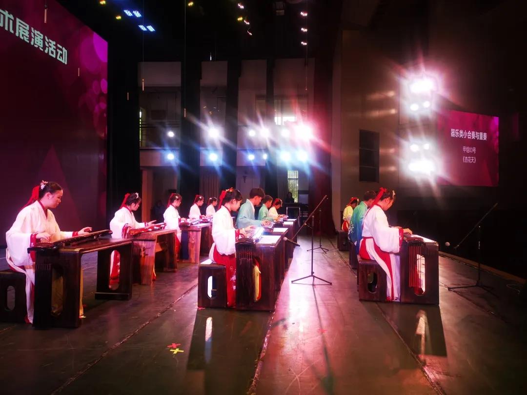 决赛中,我校选送的23件作品参加艺术表演类、书法绘画类、摄影类和书法绘画等,荣获9个一等奖,9个二等奖,5个三等奖,并荣获“优秀组织奖”。其中,现场展演舞蹈《呼吸》荣获舞蹈组甲组一等奖和“优秀创作奖”,古琴《杏花天》荣获器乐组甲组一等奖,合唱节目《赶圩归来啊哩哩》《怀念战友》荣获声乐组甲组二等奖。摄影、书画艺术类评选中,摄影作品荣获一等奖6项,绘画作品荣获二等奖3项,书法、篆刻作品荣获一等奖1项,二等奖5项,三等奖5项。