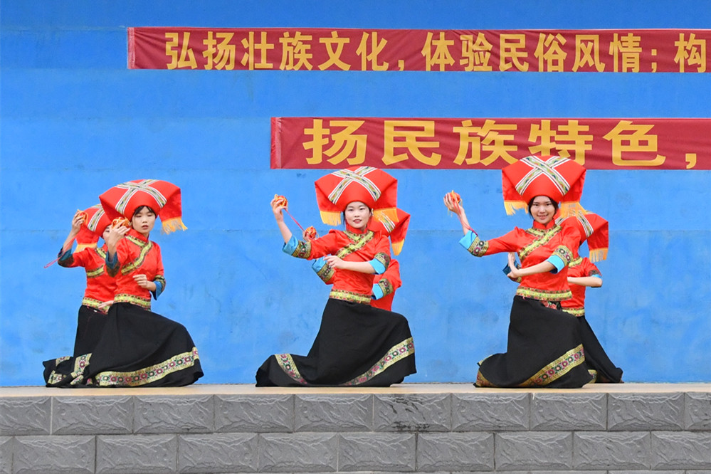 “壮族三月三”是壮族同胞在长期发展过程中创造的璀璨文化,也是我区民族文化的重大节日。本次“壮族三月三”文化艺术节充分发挥了我校自身独特的民族地域优势,结合民族文化特色、习俗,充分拓展我校广大师生的民族文化视野,激发文化认同和民族自信,提升我校民族团结教育与和谐进步水平。同时通过文艺表演和体育竞技增强了同学们之间的感情,提高身体素质,使同学们增强了对壮族传统悠久文化的理解和热爱。