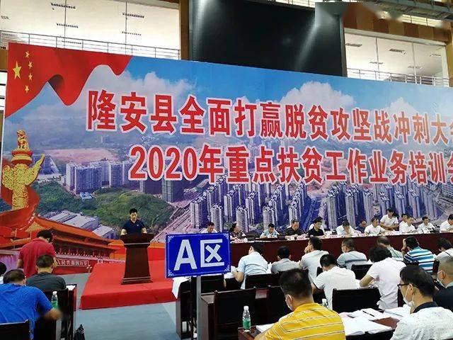 李金荣代表新盏村在隆安县脱贫攻坚战冲刺大会上做典型发言