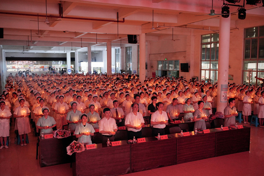伴随着庄严神圣的乐曲,学生们从领导手中接过圣洁的燕尾帽,护理老师们将燕尾帽戴在同学们的头上,护理老前辈马丽娅教授点燃手中寓意“燃烧自己,照亮别人”奉献精神的红烛,并将燃烧的红烛,传递到同学们的手中。在南丁格尔肖像的见证下,全体护生手捧红烛,庄严宣誓,神圣火种,象征着南丁格尔的精神代代相传。