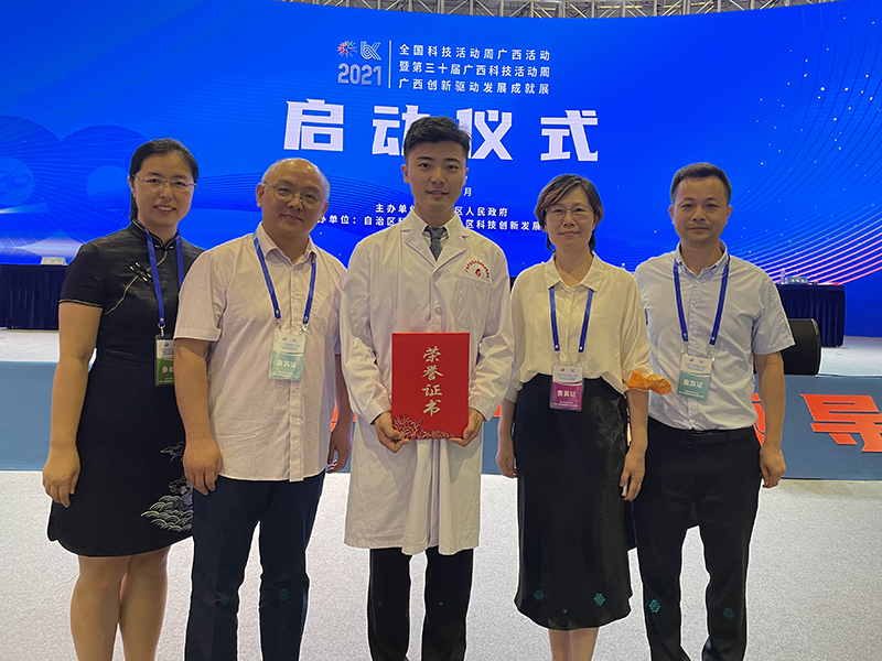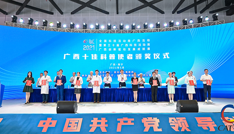 5月22日上午,2021年全国科技活动周广西活动暨第三十届广西科技活动周•广西创新驱动发展成就展(以下简称“两周一展”)启动仪式在南宁国际会展中心举行。广西壮族自治区党委副书记刘小明出席并宣布“两周一展”启动,广西壮族自治区副主席费志荣出席并致开幕辞,广西科技厅党组书记、厅长曹坤华主持2021年“两周一展”启动仪式并介绍活动情况。在启动仪式颁奖环节,与会领导为颁发荣誉证书刘小明为2021年广西十佳科普使者一等奖第一名获奖选手、来自我校附属瑞康医院刘昊医师颁奖。我校副校长冷静参加启动仪式。