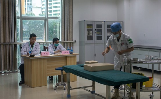 水平测试包括理论考试和技能考试两部分。其中,5月21日的理论考试为计算机化考试,主要考核中医学专业四年级已完成学习的中医执业医师考试课程。5月22~23日为临床基本技能考试,采取客观结构化临床考试模式(OSCE),包括病史采集、体格检查、中医技能及西医技能等四站,全面考核学生的临床基本技能和职业素质。
