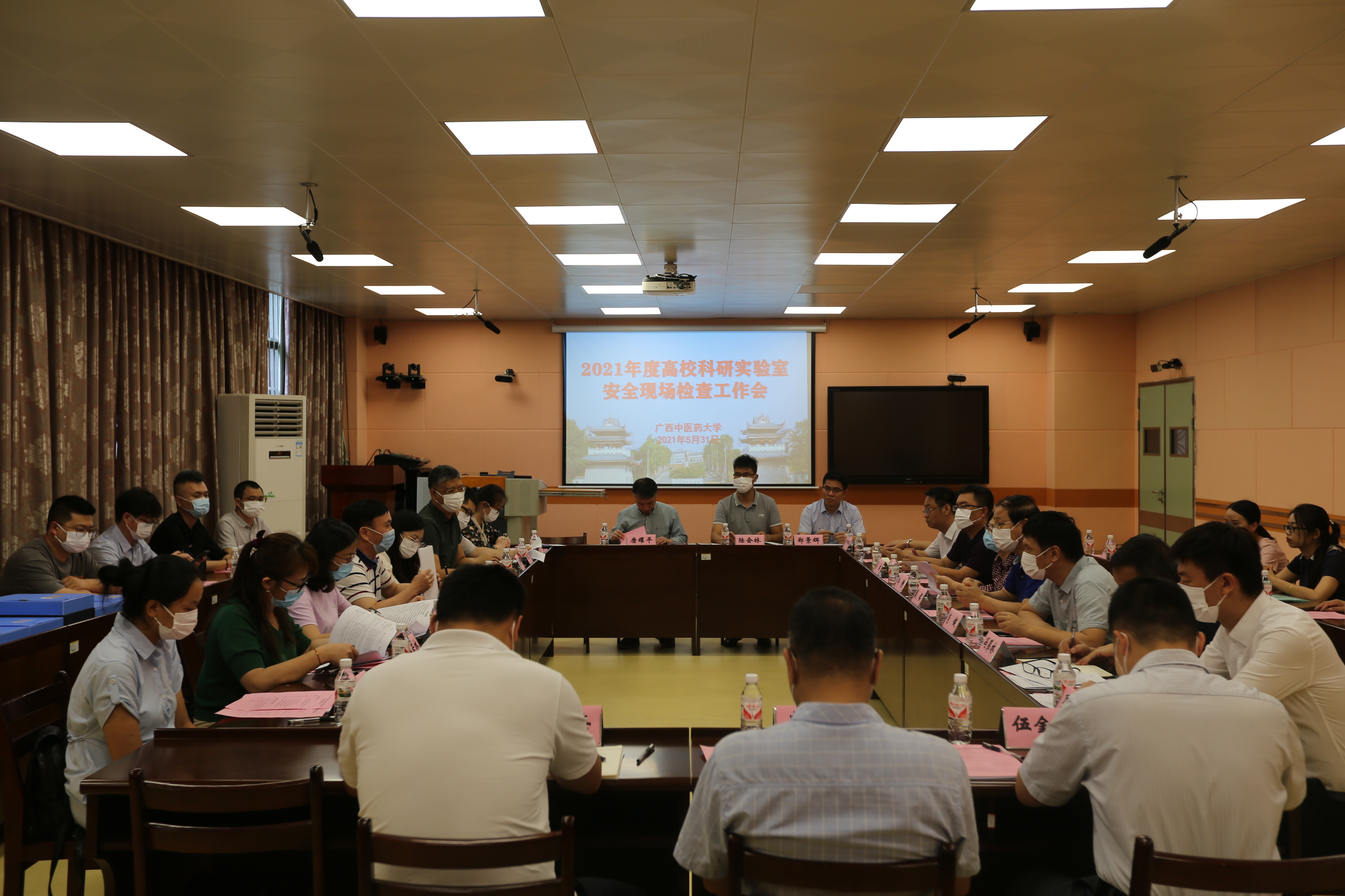 5月31日上午,自治区教育厅专家组一行7人到我校开展2021年度高校科研实验室安全现场检查,自治区教育厅科研处覃莉领队,广西医科大学梁浩教授任组长。学校副校长冷静、戴铭,迎检实验室负责人、相关职能部门负责人及厅级以上科研平台负责人共40余人参加会议。