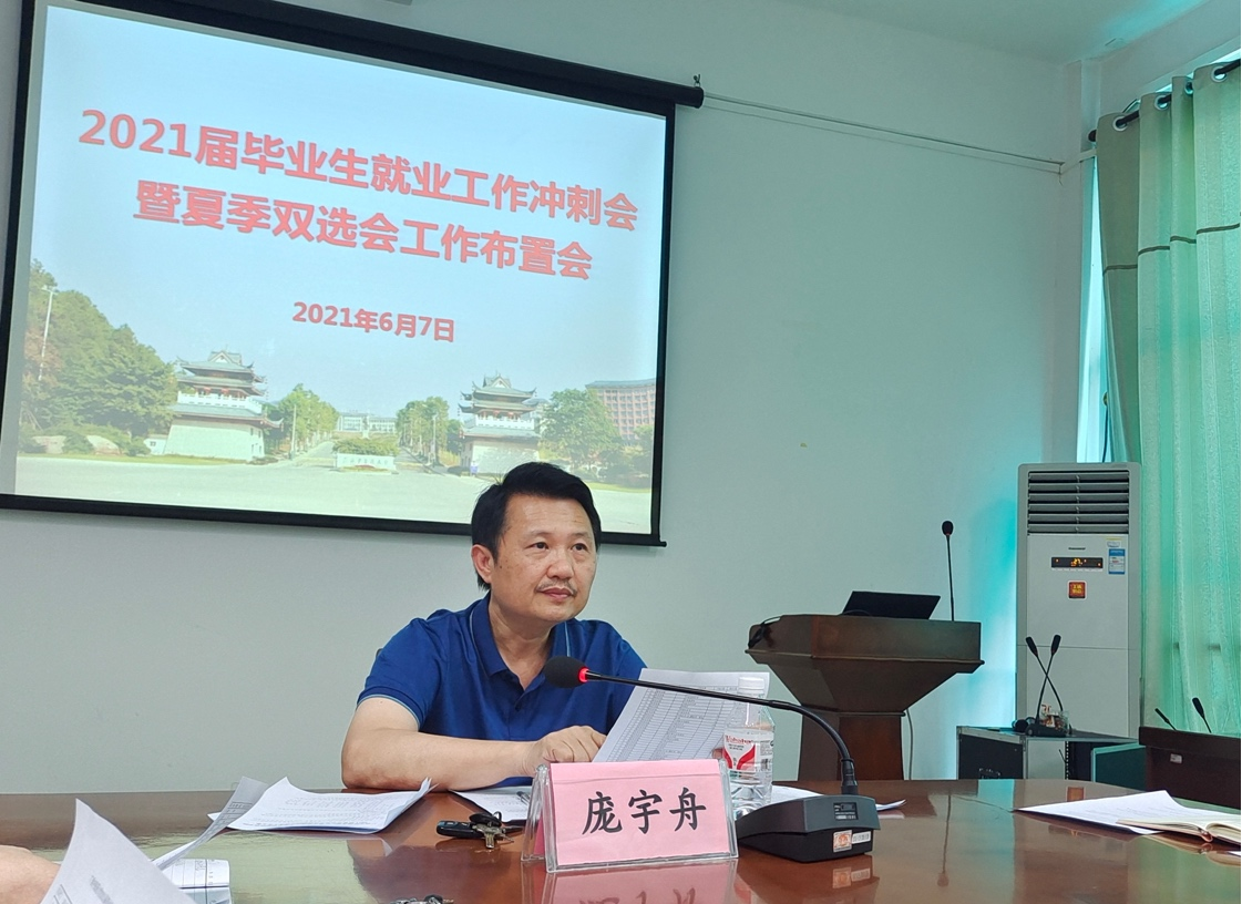 为全面贯彻落实教育部、自治区教育厅的工作要求,协同推进、全力冲刺我校毕业生就业工作,促进毕业生更充分、更高质量就业,6月7日下午,我校在仙葫校区召开了2021届毕业生就业工作冲刺会。学校相关部门、各学院分管就业工作领导、招生与就业处相关人员、赛院招就处和学工处相关人员共计40余人参加了本次会议。会议由学校党委副书记庞宇舟主持。