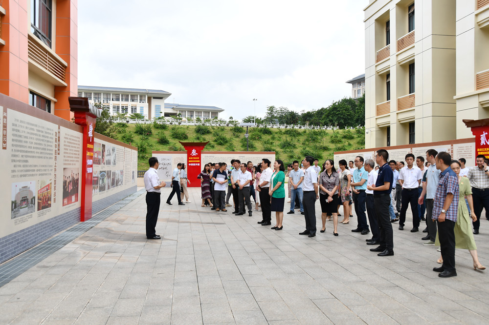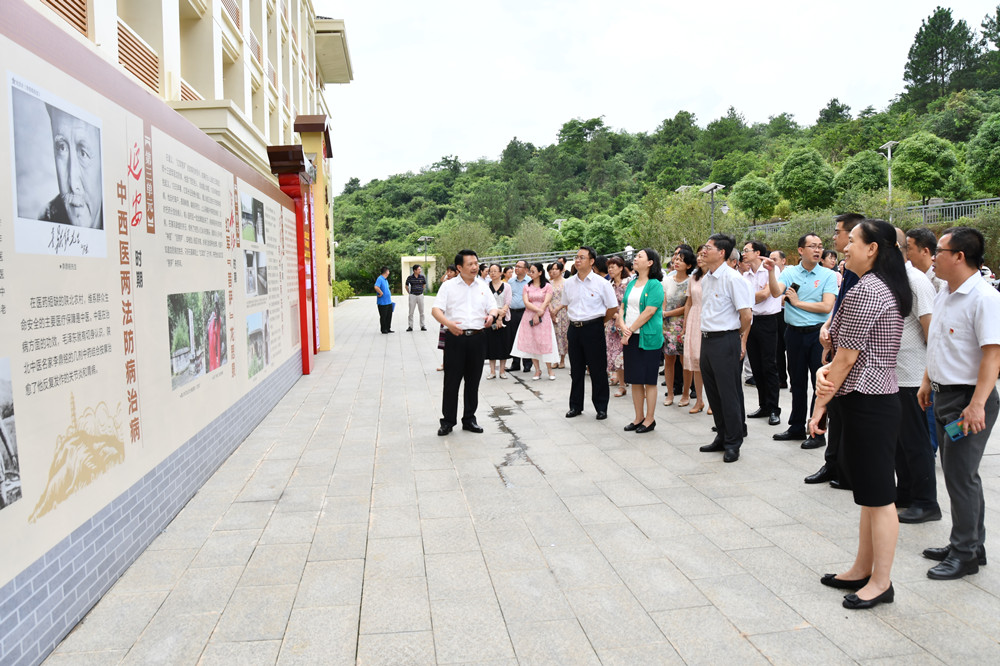 6月29日,在庆祝中国共产党建党100周年之际,由星空彩票老版本下载党委党史学习教育领导小组、博物馆共同主办的党史学习教育红色教育主题展“杏林春暖——中国共产党对中医药的保护传承发展”在仙葫校区合德楼后广场正式开展。学校党委副书记、校长姚春,党委副书记庞宇舟、何并文,纪委书记韦雪芳以及机关党委全体党员干部参观了展览。