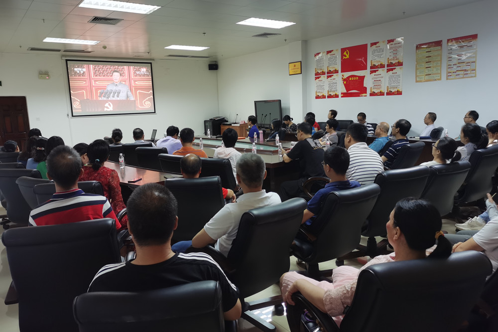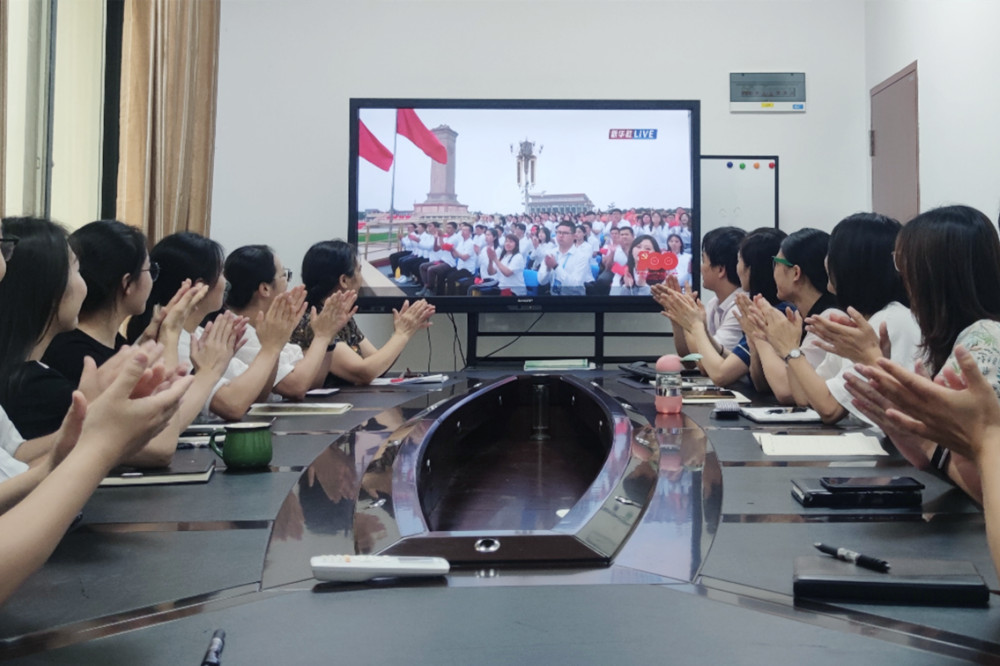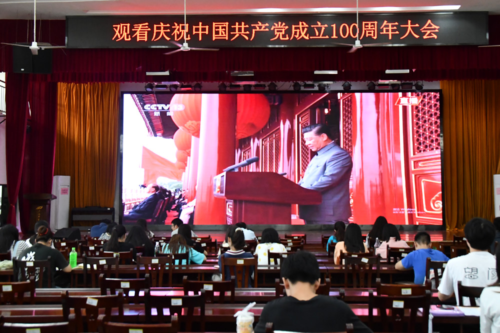 学校党委以二级党委(总支)为单位组织全体党员干部集中收看电视直播,共庆中国共产党百年华诞。在仙葫校区合德楼401会议室,学校党委副书记、校长姚春,党委副书记庞宇舟、何并文,副校长吴琪俊、冷静、戴铭,纪委书记韦雪芳,总会计师何刚亮,机关党委各支部党员代表近100人一起集中收看了庆祝大会盛况。各二级党委(总支)也分别组织收看了庆祝大会。