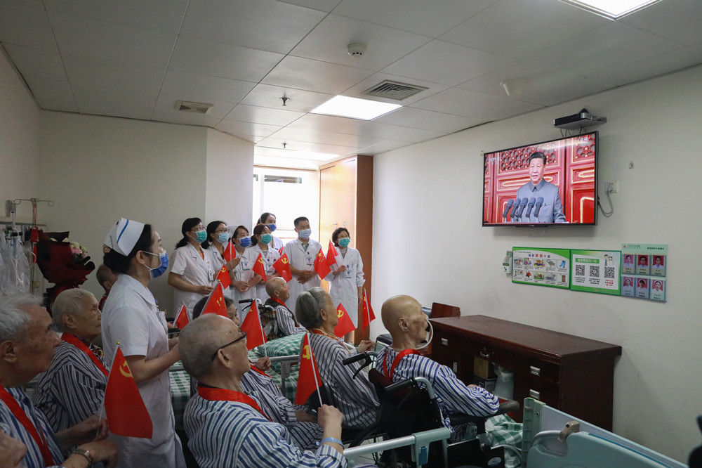 7月1日上午8时,庆祝中国共产党成立100周年大会在北京天安门广场隆重举行。中共中央总书记、国家主席、中央军委主席习近平出席大会并发表重要讲话,代表党和人民庄严宣告,经过全党全国各族人民持续奋斗,我们实现了第一个百年奋斗目标,在中华大地上全面建成了小康社会,历史性地解决了绝对贫困问题,正在意气风发向着全面建成社会主义现代化强国的第二个百年奋斗目标迈进。习近平总书记指出,一百年前,中国共产党的先驱们创建了中国共产党,形成了坚持真理、坚守理想,践行初心、担当使命,不怕牺牲、英勇斗争,对党忠诚、不负人民的伟大建党精神。一百年来,中国共产党弘扬伟大建党精神,在长期奋斗中构建起中国共产党人的精神谱系,锤炼出鲜明的政治品格。我们要继续弘扬光荣传统、赓续红色血脉,永远把伟大建党精神继承下去、发扬光大!