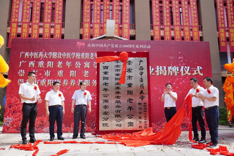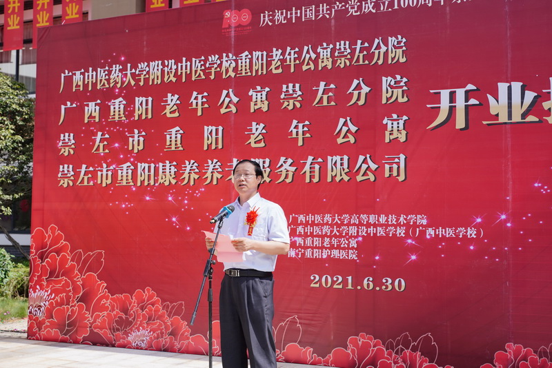附设中医学校重阳老年公寓崇左分院、崇左市重阳老年公寓院长曾朝州也在仪式上发言。