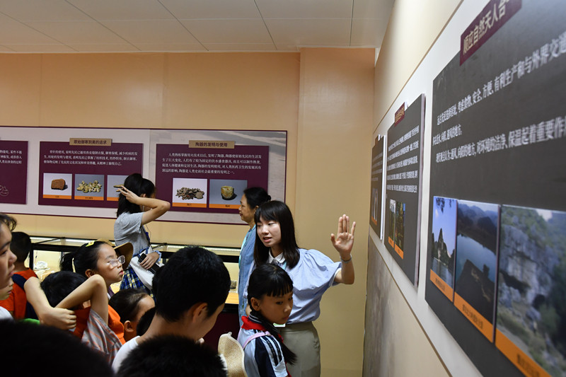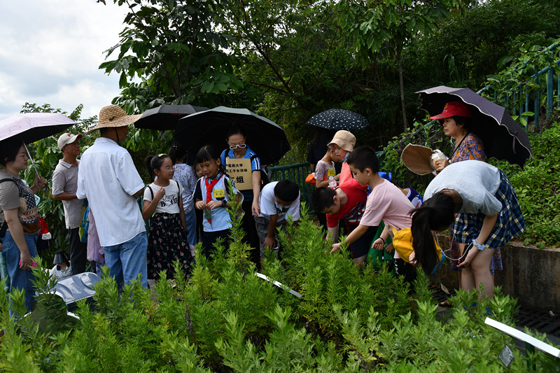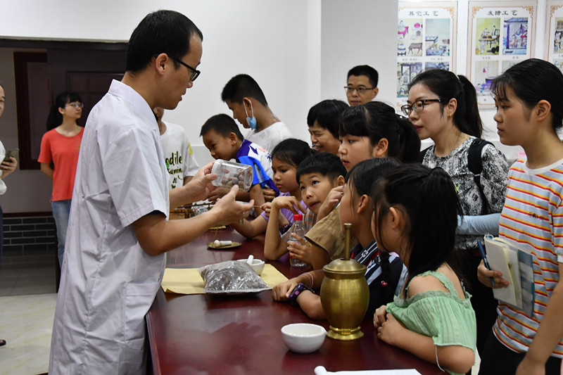 第一部分:感受中医文化。职工子女和陪同家属分别参观了《中国共产党对中医药的保护传承与发展》展览、《八桂史前遗珍与医药卫生专题展》、药师山、仙葫药圃、中药(民族药)研展馆、中药调剂实训室、广西特色药材研展馆及腊叶标本馆。讲解老师用通俗易懂、深入浅出的解说与轻松有趣的互动实验,分别向孩子和家属们展示了中医药的历史沿革、变化和发展,演示和分享了实地种植和采摘中药材的知识,开展了小小中医演练项目等,让孩子和家属们对中医药文化知识有了更深刻的了解,感受到了浓厚的中医药文化魅力。