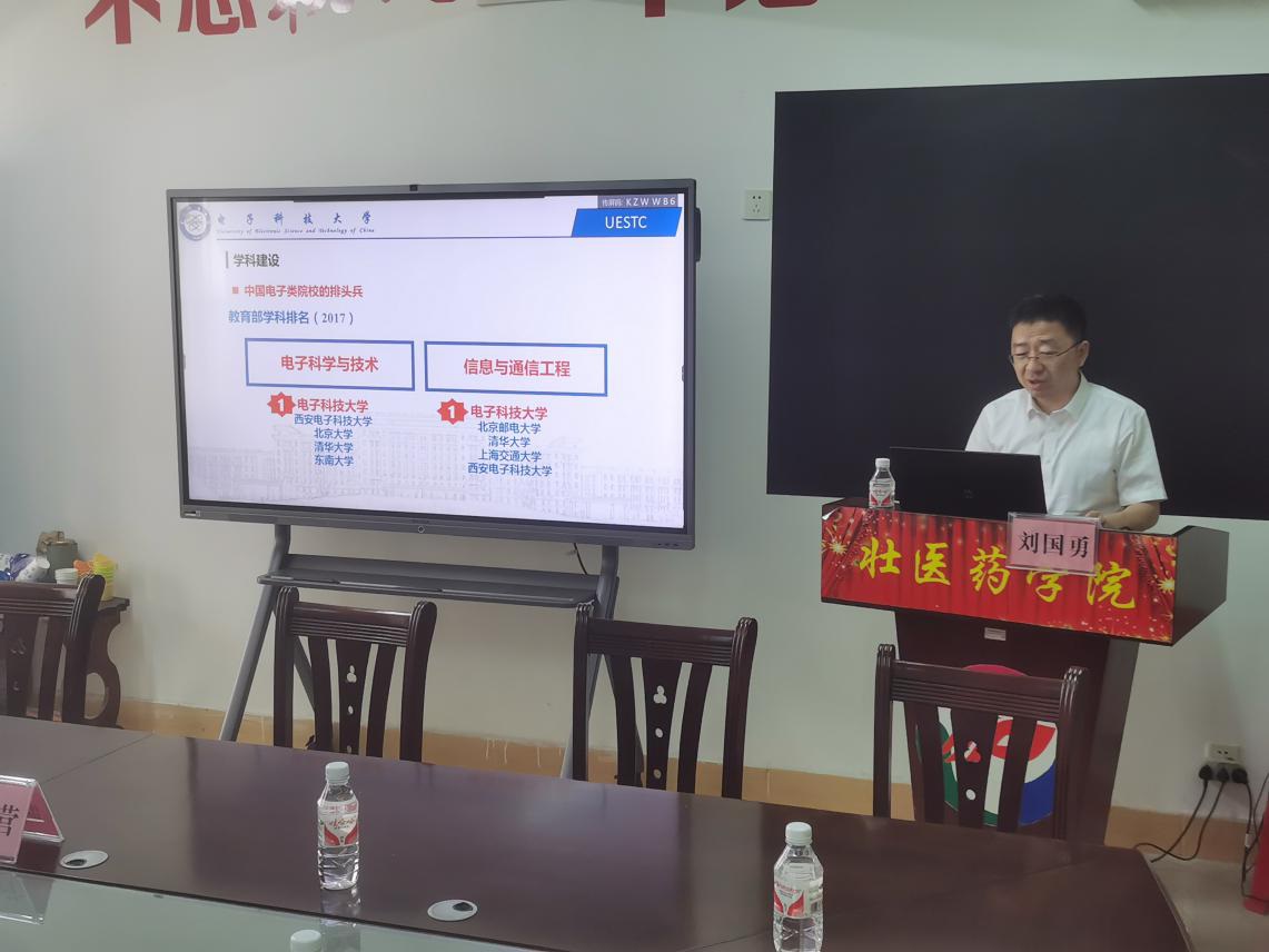 7月7日上午,电子科技大学刘国勇教授一行应邀到我校明秀校区做“中医+人工智能”主题系列讲座。本次讲座由壮医药学院蓝毓营院长主持,壮医药学院、瑶医药学院、基础部、药学院等二级学院的教职工及研究生参加了本次讲座。