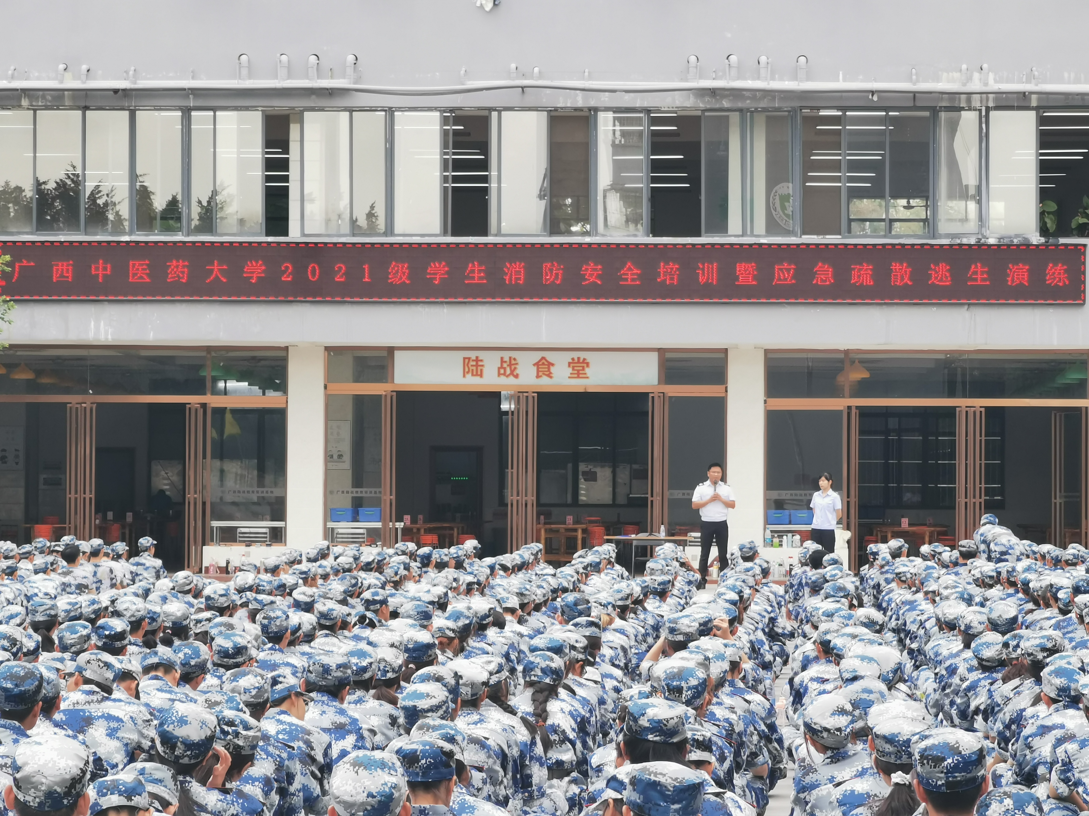 为认真贯彻落实《中华人民共和国消防法》《高等学校消防安全管理规定》,按照今年自治区消防安全委员会关于校园安全工作的部署,9月18日上午,学校邀请南宁华侨投资区消防救援大队特勤中队、广西全民防火安全服务中心分别在两个军训基地组织开展“消防进军训”活动,为我校2021级全体新生上了一堂别开生面的消防安全知识培训课。
