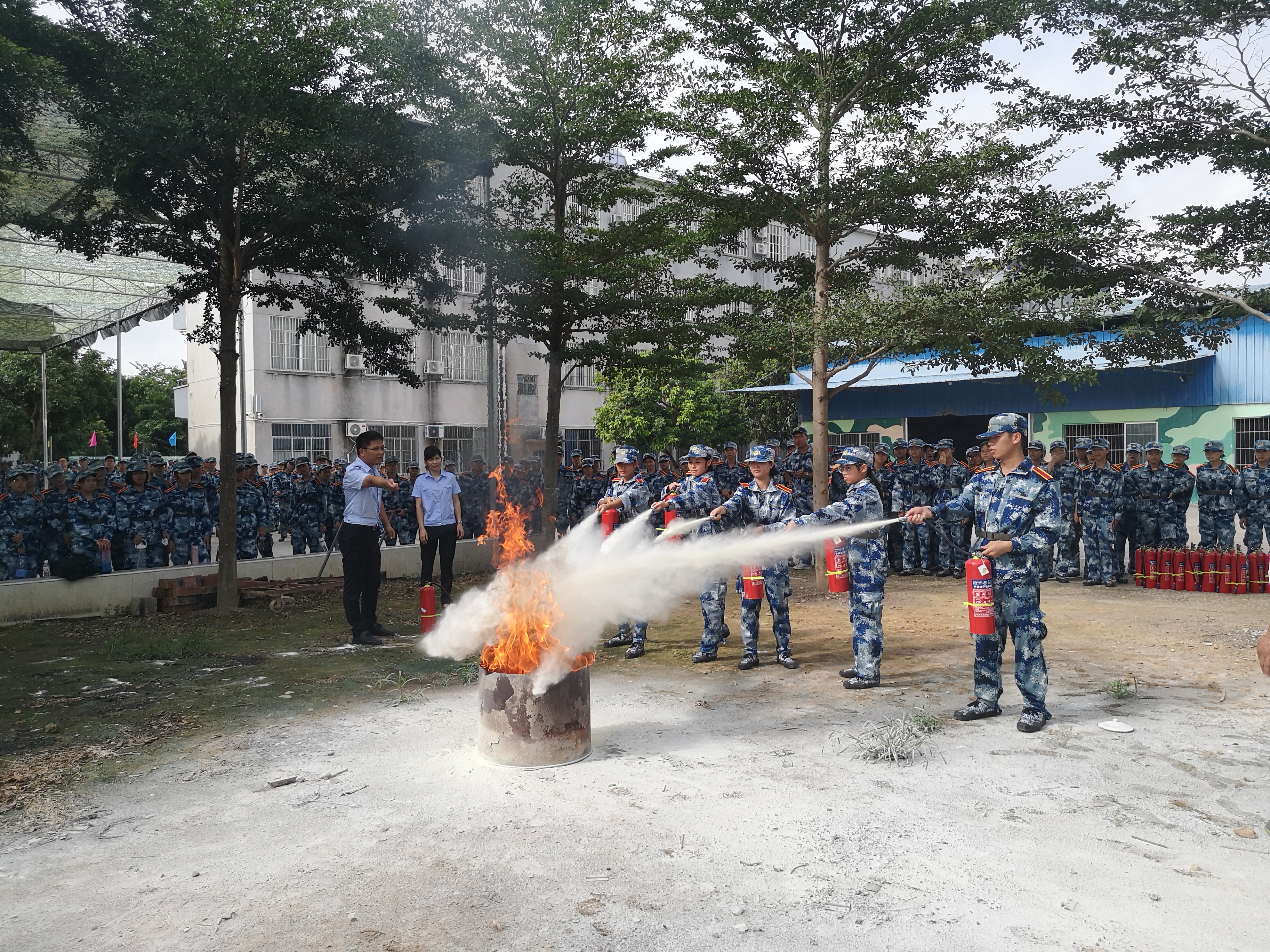 安全培训讲座结束后,学校保卫处、学工处、后勤处等相关部门人员和军训基地教官组织全体新生开展灭火器实际操作使用、应急疏散逃生自救演练。通过此次活动,有效提升了学生的消防安全意识和自防自救能力,营造了良好的学习消防知识、遵守消防法规的浓厚氛围,为进一步做好学校消防安全工作奠定了坚实基础。