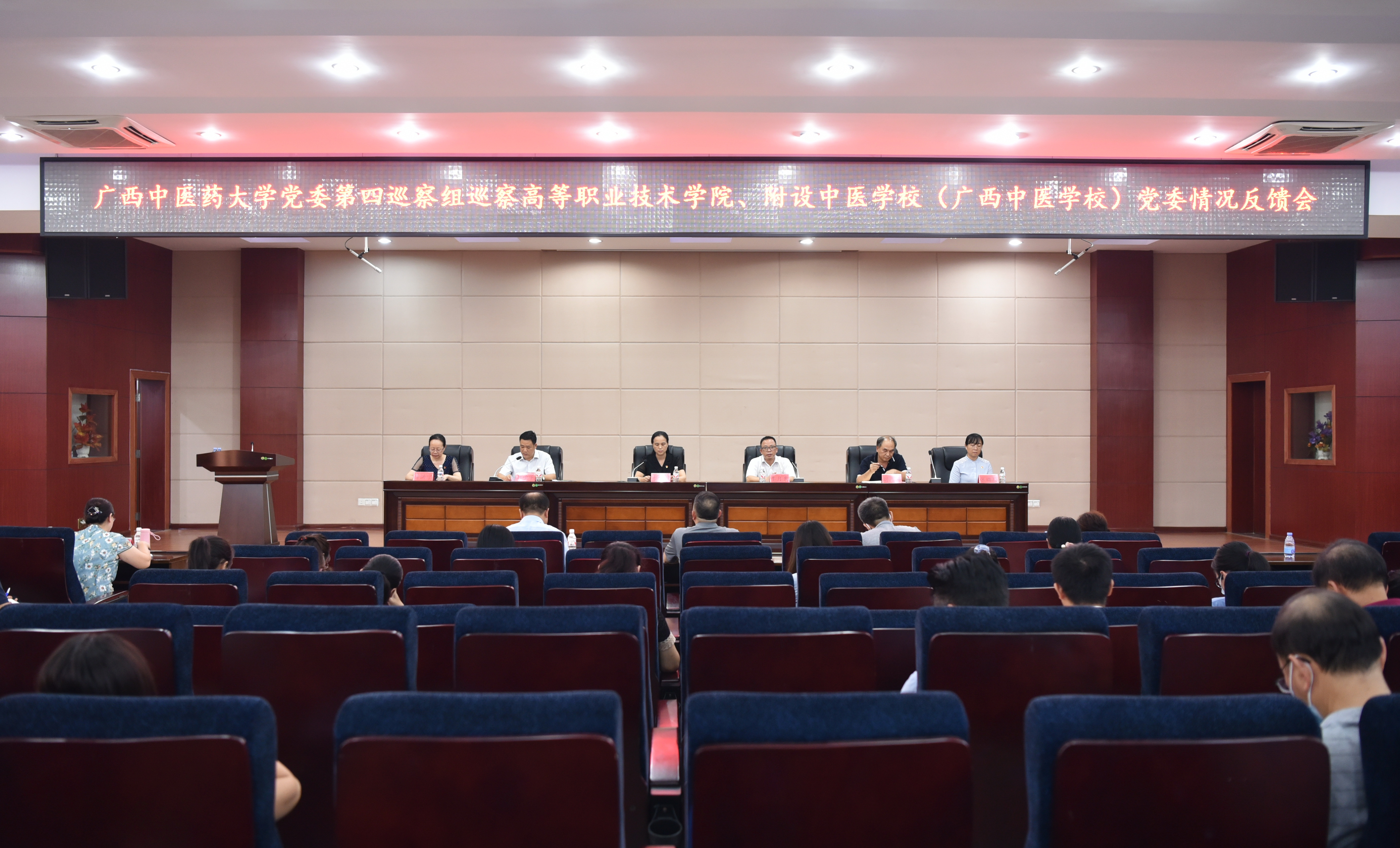 9月28日下午,学校党委第四巡察组在附设中医学校北湖校区多功能厅向高等职业技术学院、附设中医学校党委反馈巡察情况。学校党委常委、纪委书记、巡察工作领导小组副组长韦雪芳同志讲话并提出整改要求,第四巡察组组长李月发同志代表巡察组向高等职业技术学院、附设中医学校党委领导班子进行了反馈,蒋子华同志主持会议并作表态发言。
