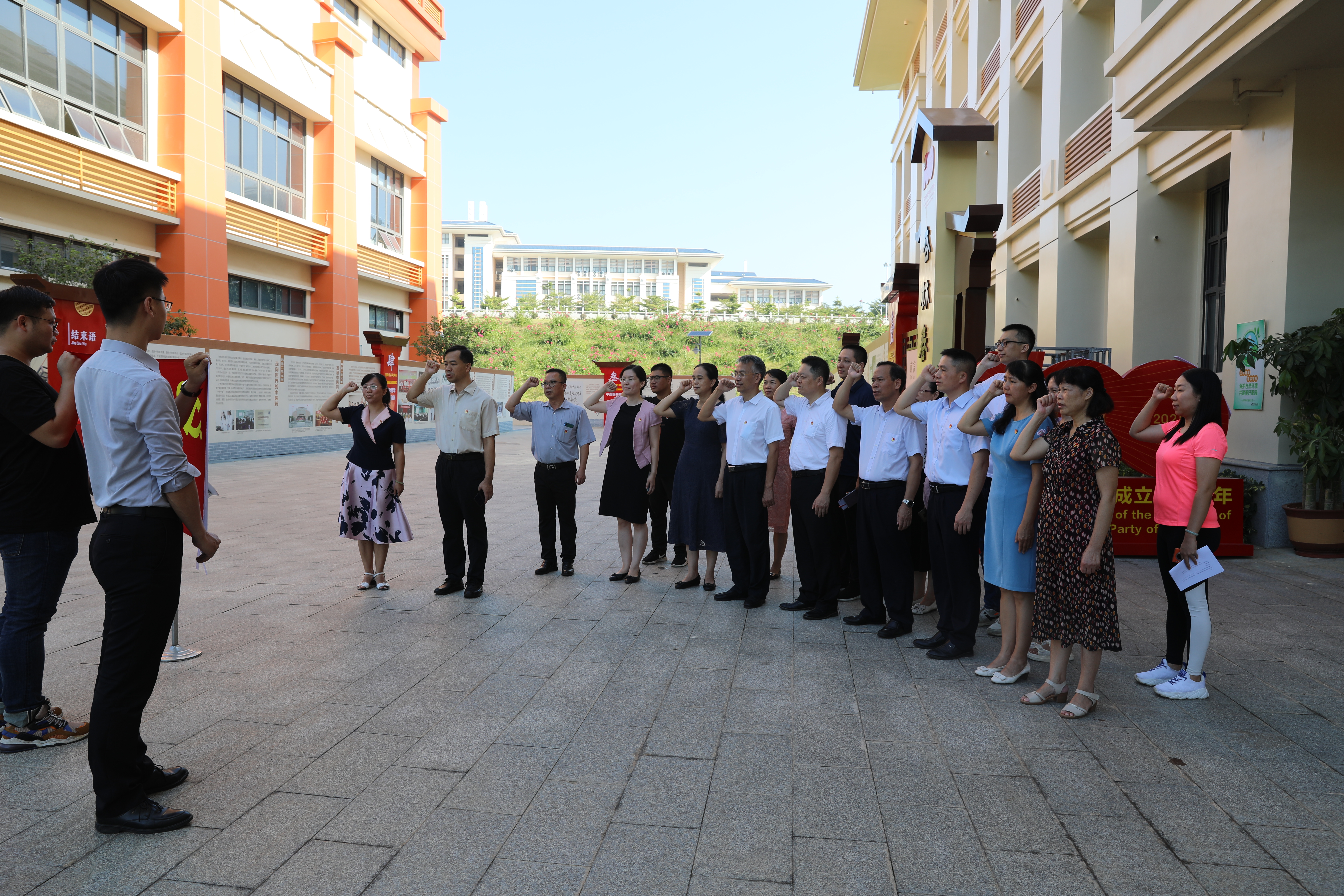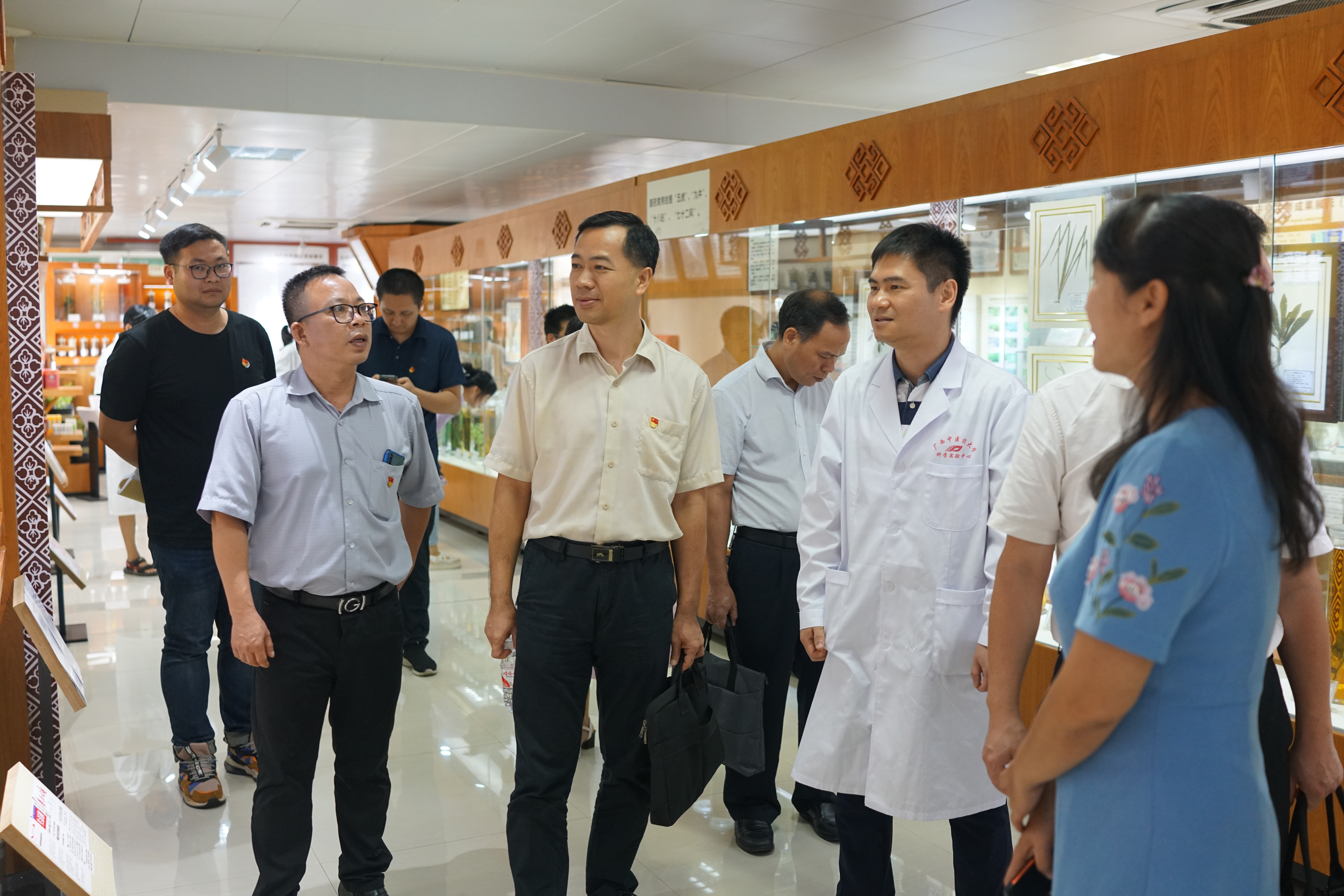 全体党员参观党史学习教育主题展“杏林春暖—中国共产党对中医药的保护传承发展”,一起回顾了中医药百年发展历程,了解了在党的坚强领导下中医药发展的辉煌历程以及中医药事业在八桂大地的天壤巨变,并举行了重温入党誓词仪式。