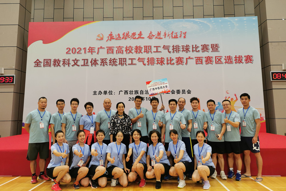 为推动群众体育和全民健身活动的开展,丰富高校教职工的业余文化生活,增进相互交流和友谊,促进和谐校园建设和发展, 2021年10月10日—12日,我校工会组织工会干部队、教职工男队、教职工女队共三支代表队参加在广西体育中心举行的2021年全区高校教职工气排球比赛暨全国教科文卫体系统职工气排球比赛广西赛区选拔赛,比赛由广西教育工会主办,全区46所高校组队参赛。我校纪委书记韦雪芳带队参加此次比赛。