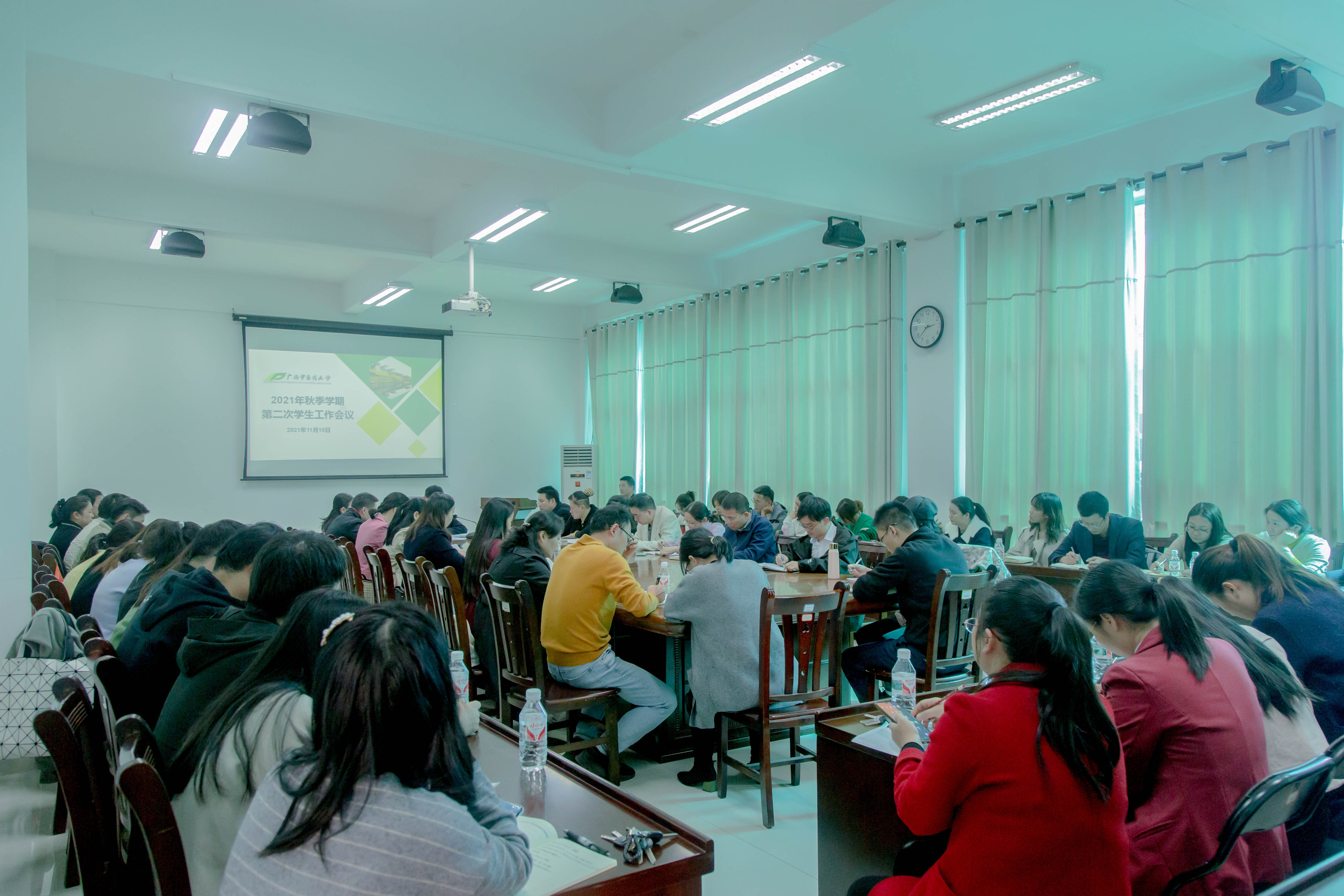 11月10日下午,我校在大学生活动中心317会议室召开2021年秋季学期第二次学生工作会议,会议紧紧围绕狠抓学风建设展开。学校党委副书记何并文,学工部、教务处、教评中心、学校团委负责人,各学院学生工作分管领导及全体辅导员近80人参加会议,会议由学生工作部部长叶勇玲主持。