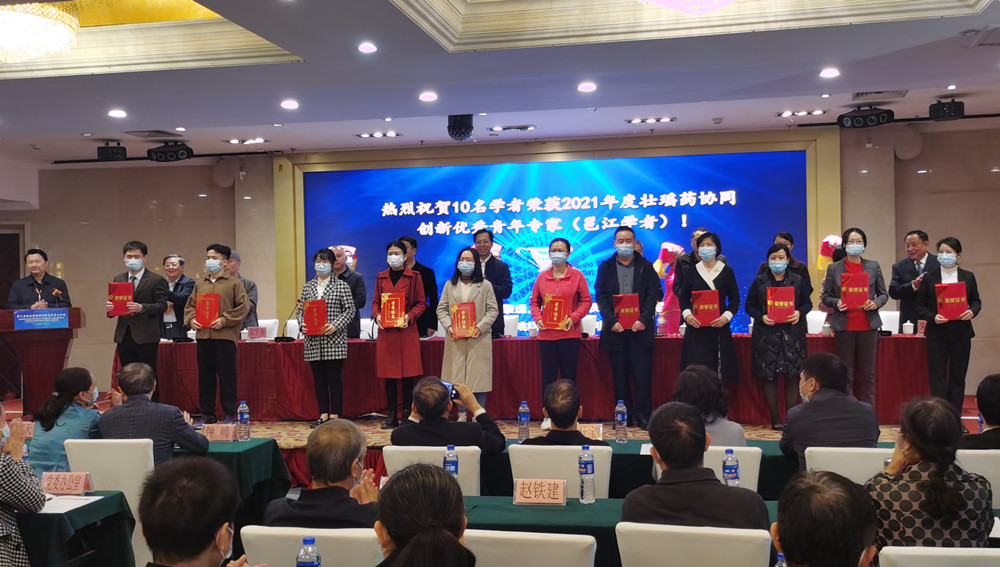 2021年,壮瑶药协同创新研究成果丰硕,“壮药药材学创建与质量标准研究成果”获广西科学技术奖自然科学类二等奖,“广西产壮药材铁皮石斛生长途径调控与品质相关性的研究”获中国民族医药协会科学技术奖一等奖。研究平台与团队建设上台阶,联合申报国家级药品重点实验室—“国家药监局中药材质量检测与评价重点实验室”通过认定,为实现广西国家级药品重点实验室“零”突破作出新贡献,论坛举行了“国家药品监督管理局中药材质量监测与评价重点实验室(联合单位)”揭牌及表彰等仪式;论坛形成共识,要贯彻落实习近平总书记关于中医药工作的重要论述,把老祖宗留的中医药宝库保护好传承好发展好。要结合实际,贯彻自治区党委第十二次党代会精神,落实建设壮美广西“1+1+4+3+N”的目标任务,持续推动桂粤湘黔滇五省(区)壮瑶药协同创新,在壮瑶药事业与产业发展道路上迈出新步伐,促进经济与社会高质量发展。