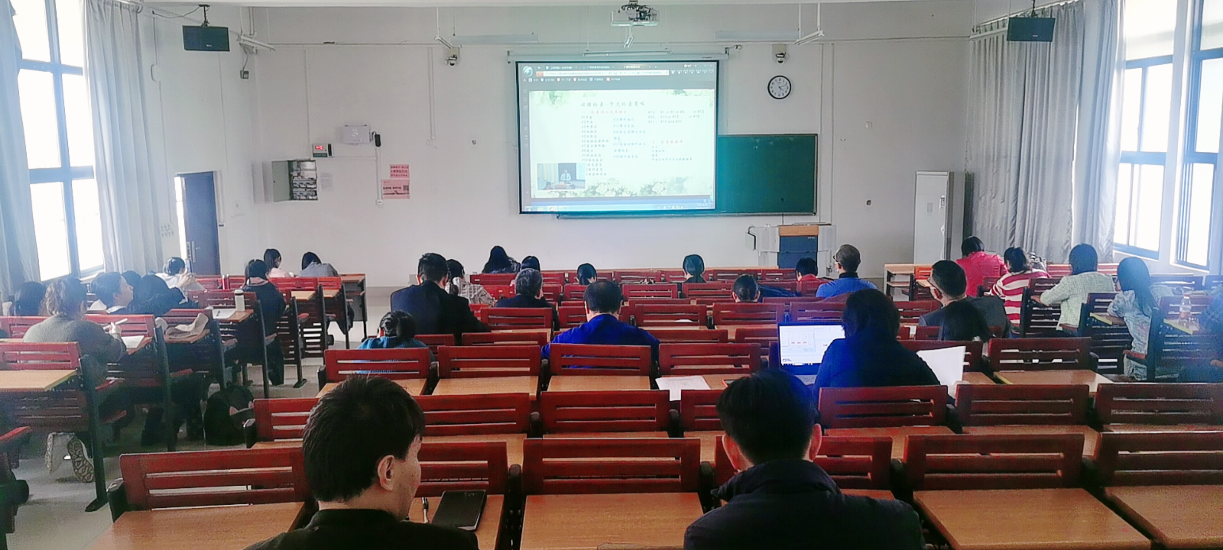 副校长戴铭,教务处、研究生院等相关负责人参加活动。教务处组织我校各学院教师和全区高校教师一起通过智慧教室联通系统进行观摩。经过精心筹备,此次课程思政示范课展示取得圆满成功,获得上级有关部门的好评。