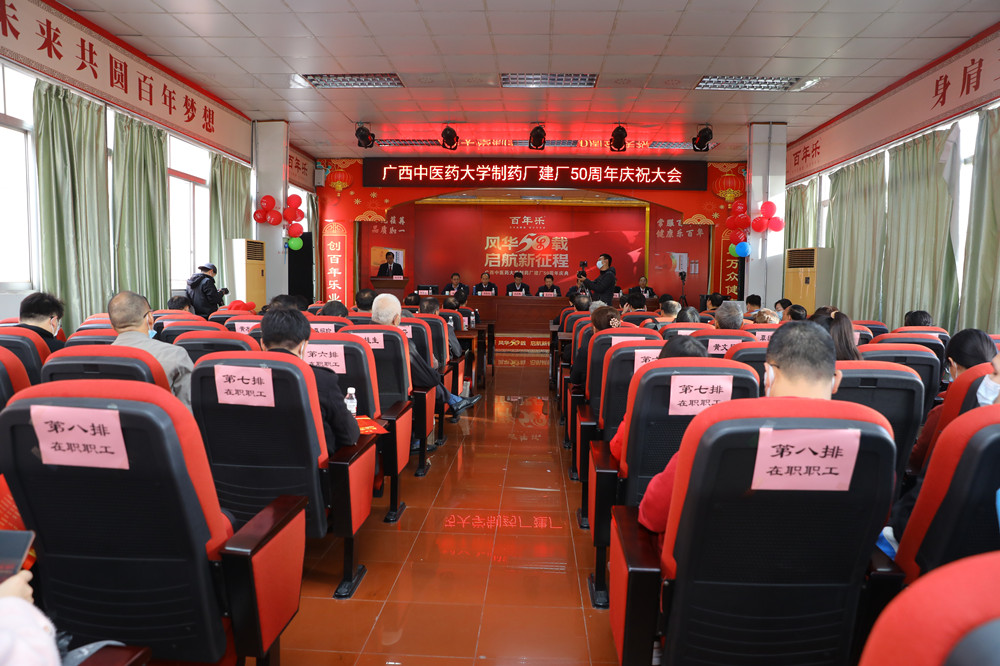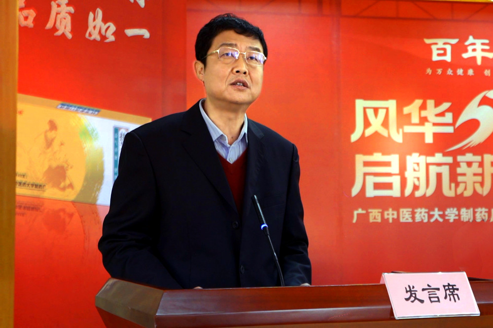 尤剑鹏代表学校发表了讲话。他说,制药厂建厂50年来,始终秉承“为万众健康,创百年乐业”的宗旨,坚持以发展祖国的中医药事业为己任,在市场的磨砺中健康成长,在激烈的竞争中不断壮大,这是历代百年乐人辛勤耕耘、努力奋斗的结果。他指出,当前制药厂的发展面临着难得的历史机遇,党的十八大以来,习近平总书记对中医药工作作出了一系列重要论述,充分肯定了中医药独特优势和作用,为新时代中医药传承创新发展指明了方向。他强调,“十四五”时期是实现中医药振兴发展的关键时期,制药厂要深入贯彻习近平总书记关于中医药工作的重要指示精神,把新发展理念贯彻到中医药传承创新发展全过程和各领域,在构建新发展格局中实现中医药振兴发展,为全面建成小康社会、实现中华民族伟大复兴中国梦和建设新时代中国特色社会主义壮美广西作贡献!最后,他给制药厂提出了三点希望和要求:一是要提高政治站位,增强发展的责任感和紧迫感;二是要强化科技兴厂,提升企业核心竞争力;三是要完善内部管理,推动企业高质量发展。