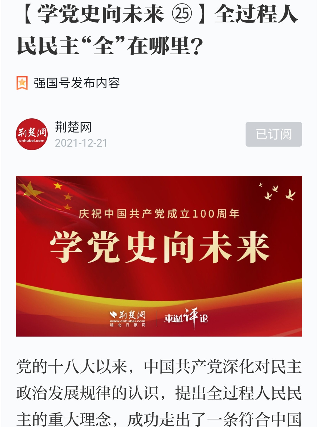 【学习强国】「学党史向未来 」全过程人民民主“全”在哪里?