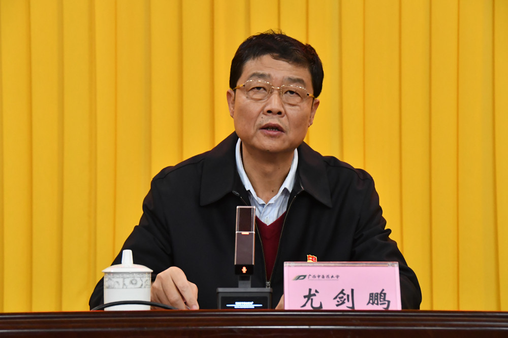 尤剑鹏在讲话中通报了前一阶段我校开展的以案促改有关工作情况,认为前一阶段学校针对唐农、覃裕旺案件采取的一系列整改措施,取得了一些成效,但与自治区党委和纪委监委的要求相比,还有一定差距。为进一步开展好这项工作,尤剑鹏提出了三点意见:一是提高政治站位,深刻认识开展以案促改的重要意义,要通过深入剖析唐农等人严重违纪违法的典型案例,切实发挥警示、震慑和教育作用,引导党员干部以案为鉴、举一反三,不断提高党员干部的自身免疫力;二是坚持问题导向,深刻剖析违纪违法问题发生的根源,严格落实管党治党主体责任,坚定理想信念,时刻谨记依规依纪依法按照程序行使权力,坚持按规则、按制度办事;三是巩固拓展提高,确保以案促改工作取得实实在在的效果。