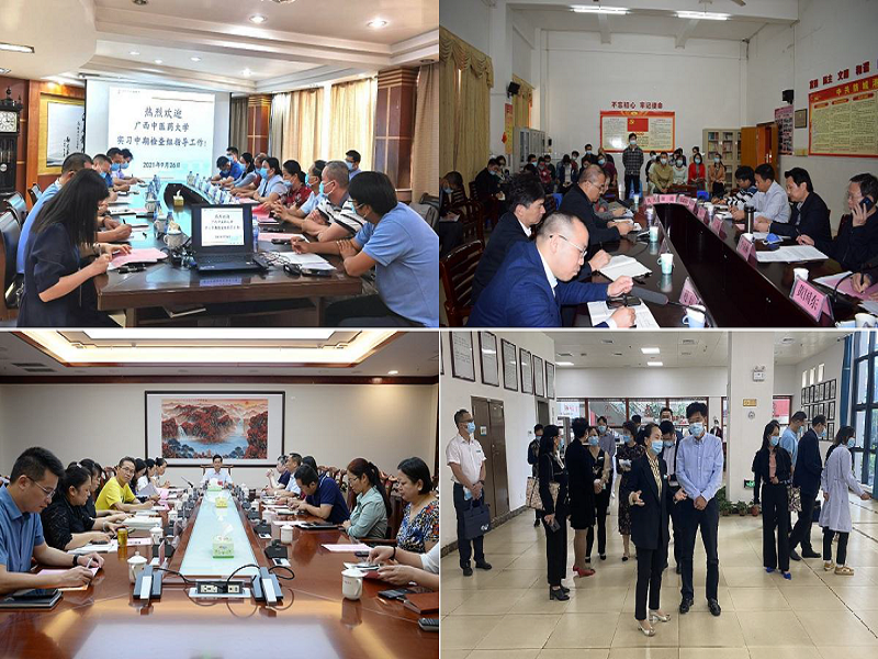 实习中期检查由教务处、高等职业技术学院、赛恩斯新药学院、第一临床医学院、瑞康临床医学院、附属国际壮医临床医学院、护理学院、针推学院、骨伤学院等单位选派人员组成,通过教师座谈会、学生座谈会、学生技能考核、实习手册检查、基地考察、临床教师培训等方式进行,以全面了解我校2022届毕业生的毕业实习及实践教学基地建设情况。