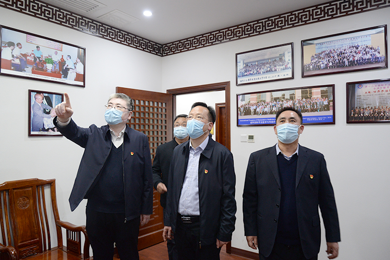 莫锦荣一行先后到国医堂名医馆、中医药博物馆、院史馆、国医大师馆、中西医结合转化医学中心、射波刀治疗中心等地,现场了解医疗护理、学科建设、科室运行等情况,并就关心的问题与科室人员进行了交流,对医院取得的一系列成绩表示了肯定。莫锦荣指出,要加强医院班子建设,将党建工作与医疗工作、科研工作、学科建设、社会服务、文化建设、队伍建设等工作深度融合,全面推进医院高质量发展;同时要做好疫情防控工作,积极响应上级党委政府的统一调配,并加强医院内部的防控工作,确保广大群众的安全就医。
