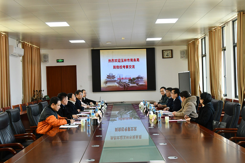2月25日下午,玉林市商务局党组书记、局长李唐明一行5人到我校仙葫校区交流学习。学校校长姚春,学校相关部门负责人参加座谈会。会议在仙葫校区合德楼525会议室举行。