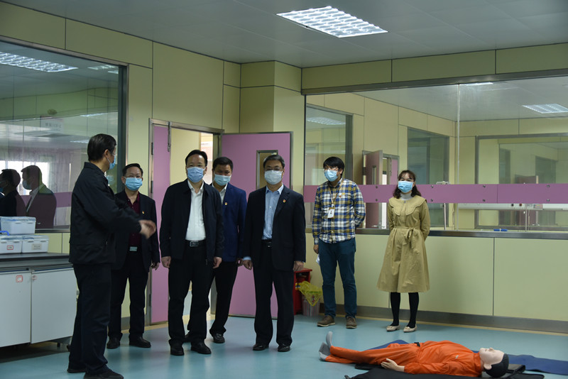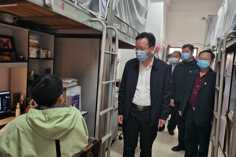 3月3日上午,星空彩票老版本下载党委书记莫锦荣在学校党委办公室主任徐方明的陪同下到赛院调研指导工作。赛院领导李成林、梁天坚、傅鹏、赵斌陪同莫锦荣一行到学生宿舍、食堂、实验室、隔离观察区等进行了检查,同时现场检查了学生开学第一周在宿舍进行线上教学的学习、生活等情况。