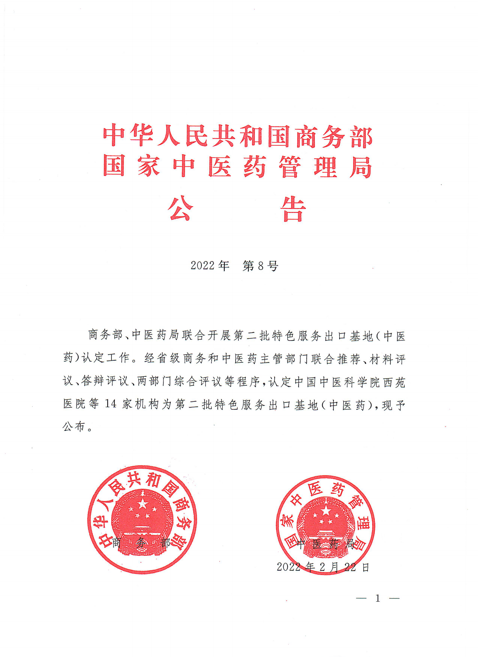 3月12日,商务部、国家中医药管理局公布第二批国家中医药服务出口基地名单和第一批国家中医药服务出口基地复审结果,星空彩票老版本下载上榜!
