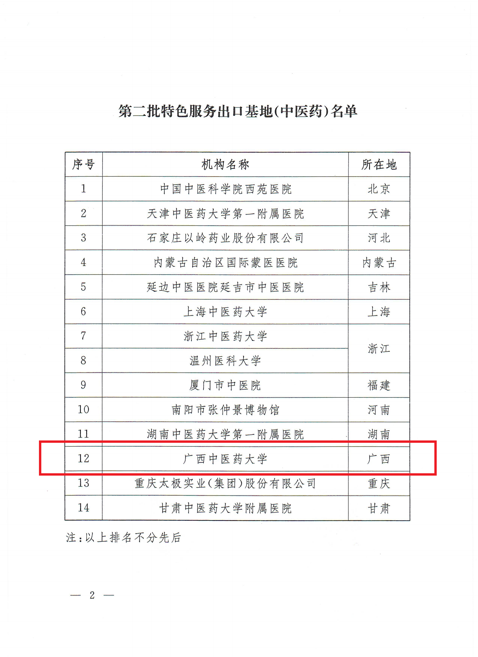 商务部、国家中医药管理局高度重视第二批中医药服务出口基地评审工作,经过项目申报、省级商务和中医药主管部门联合推荐、专家书面评审和答辩评审、商务部和国家中医药管理局两部门综合评议、公示等一系列程序,全国共有14家机构入选,我校是广西壮族自治区首家入选的国家特色服务出口基地(中医药),实现自治区服务贸易国家级基地“零”的突破。