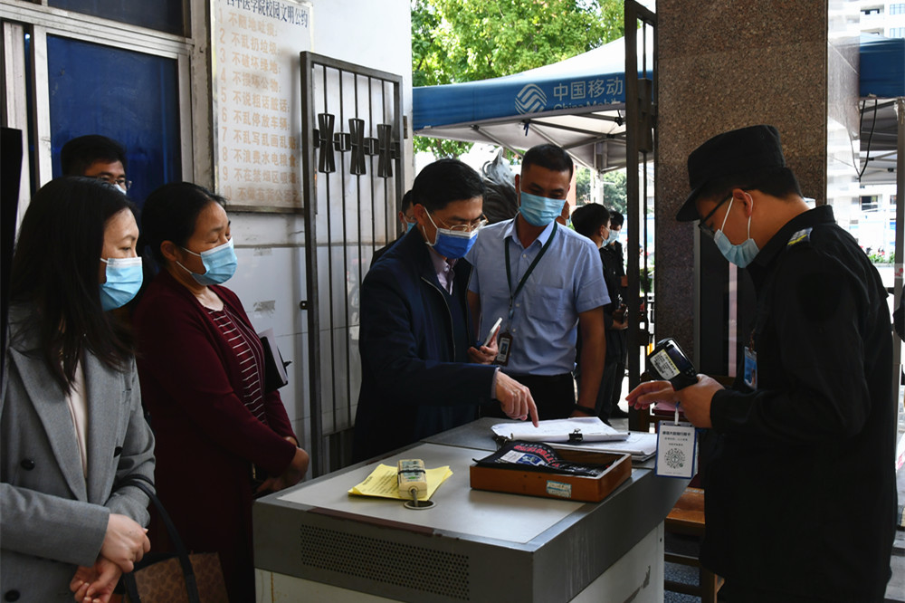 何并文副书记一行在明秀校区检查疫情防控和校园安全工作