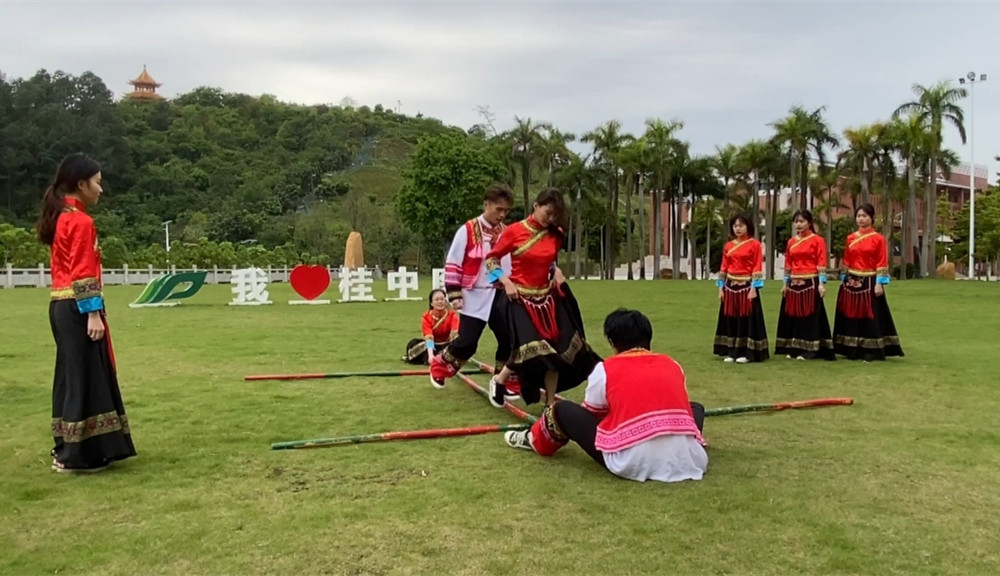 蓝毓营、张煜、韦杏也通过视频的形式向同学们表达了祝福。活动中,壮医学子以俏丽多姿的绣球舞、俏皮可爱的竹竿舞、动听的山歌对唱、激烈的体育竞技如跳竹竿、抛绣球等展示了壮族丰富多彩的民俗文化和学生的青春活力。此外,各班级还录制了祝福视频庆祝三月三的到来。在线上活动中,还展示了壮医学子积极投身到百色抗疫志愿服务一线的场景。