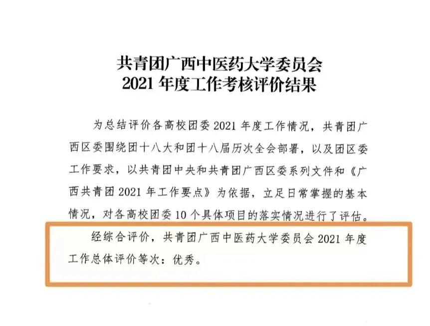 【喜报】校团委在2021年度广西共青团工作考核评价中获“优秀”等次