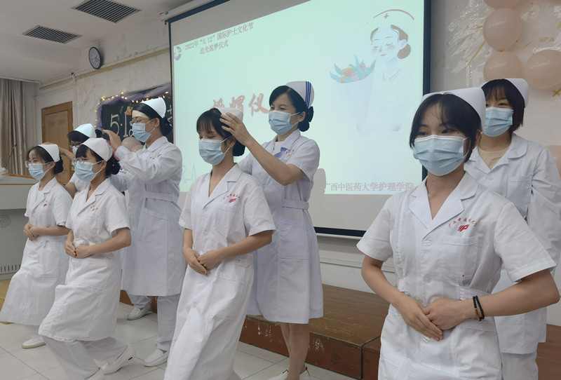 授帽仪式上,在《同一首歌》的旋律中,同学们一一上台,戴上老师们亲手戴上的护士帽,自信从容的迈步向前。授帽仪式结束后,同学们手捧红烛,在老师带领下,举起右手,庄严进行《护理誓言》宣誓。随后,在场的同学们还分享了“我与护理一路走来”的点滴感想。