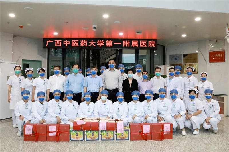 4月15日,在上海疫情最吃紧的时候,我校第一附属医院、附属瑞康医院、附属国际壮医医院的187名医护人员,弘扬“生命至上、举国同心、舍生忘死、尊重科学、命运与共”的伟大抗疫精神,随广西援沪医疗队奔赴上海,他们充分发挥中医药、壮瑶医药的特色优势诊治病人,用实际行动践行“敬佑生命、救死扶伤、甘于奉献、大爱无疆”的医者精神,充分展现了医者仁心的高尚品格!