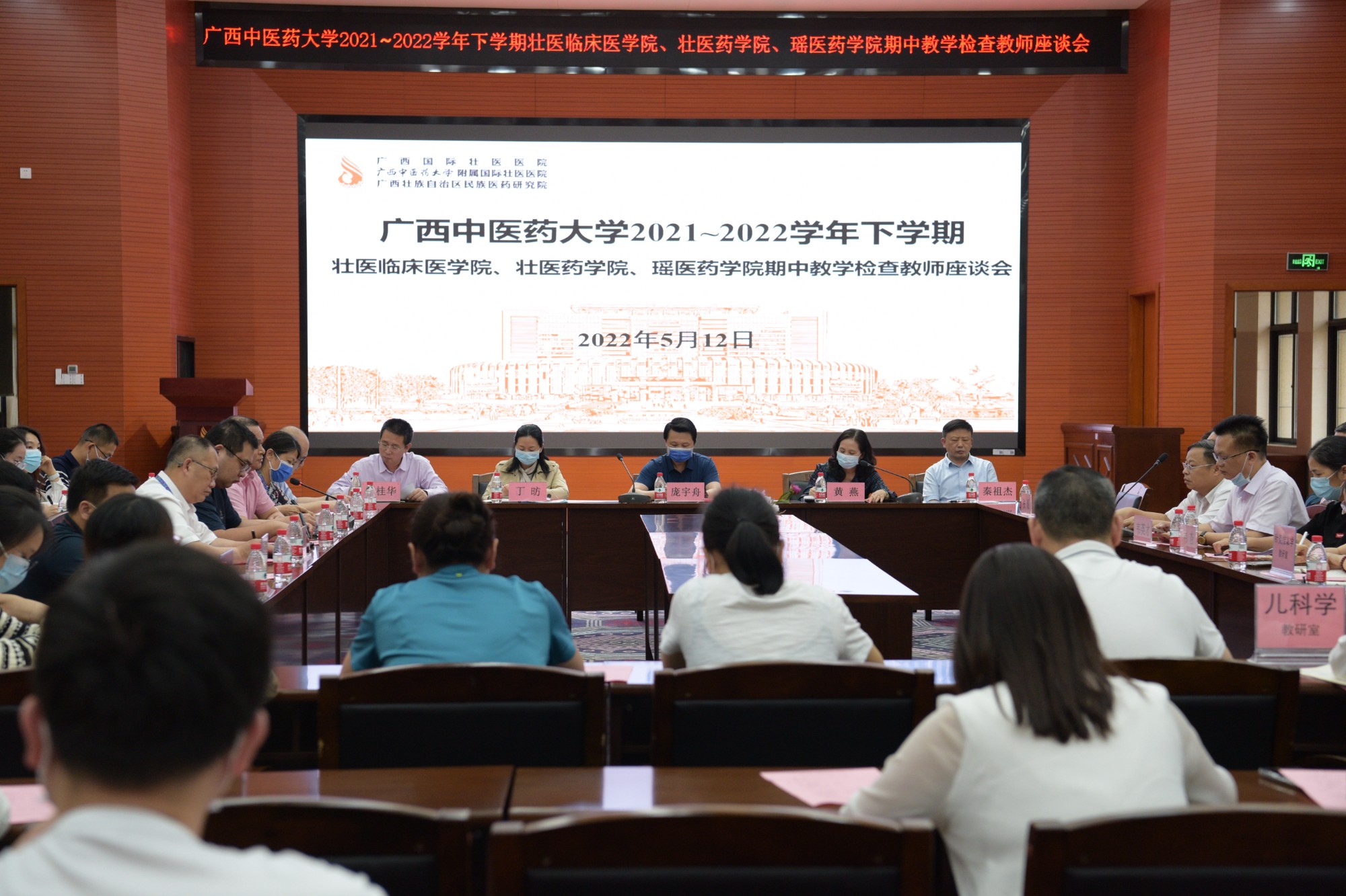 星空彩票老版本下载2021-2022学年下学期壮医临床医学院、壮医药学院、瑶医药学院期中教学检查教师座谈会于5月12日在广西国际壮医医院举行。学校党委副书记庞宇舟出席并作指导,人事处、教务处,广西国际壮医医院(壮医临床医学院),壮医药学院,瑶医药学院负责人,教研室负责人及教师代表参加。