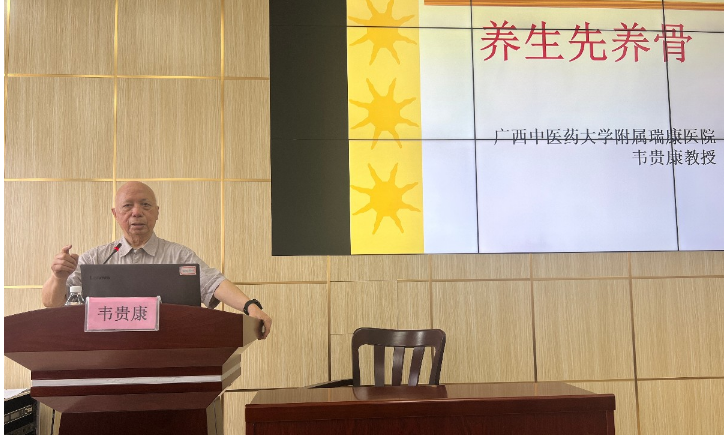 国医大师韦贵康、附属瑞康医院副院长陈锋及国医大师传承弟子韩杰等专家在医院会议大厅开展学术讲座,将临床常见骨科疾病的诊治经验分享给前来参会的医务人员,着重分享了腰痛病的精准治疗及韦氏手法治疗膝骨性关节炎的经验。