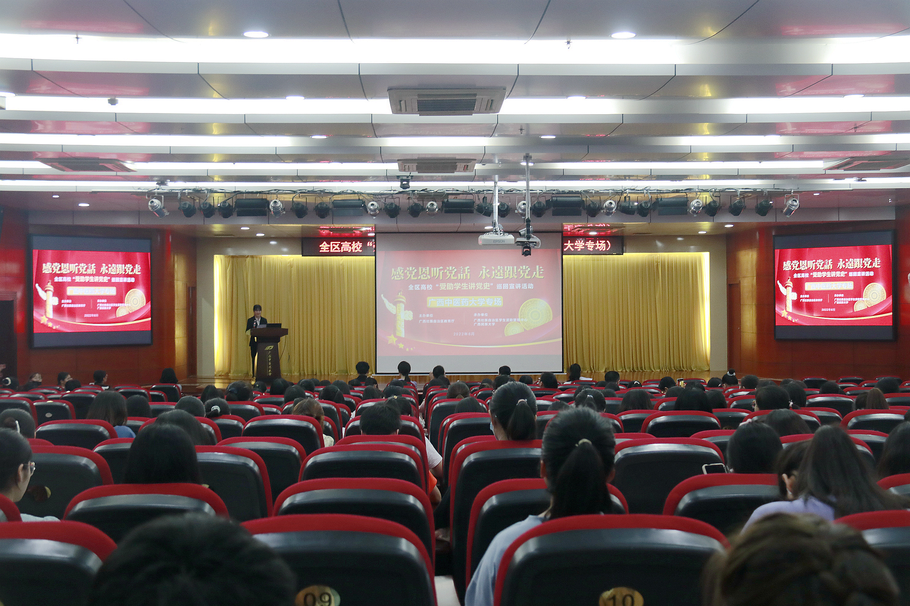 为深入学习贯彻习近平总书记在庆祝中国共产党成立100周年大会上的重要讲话精神和党的十九届六中全会精神,进一步创新资助育人方式,6月17日下午,全区高校“受助学生讲党史”巡回宣讲在我校仙葫校区图书馆第二会议室顺利开展。参加本次宣讲活动的学校师生总计200余人。