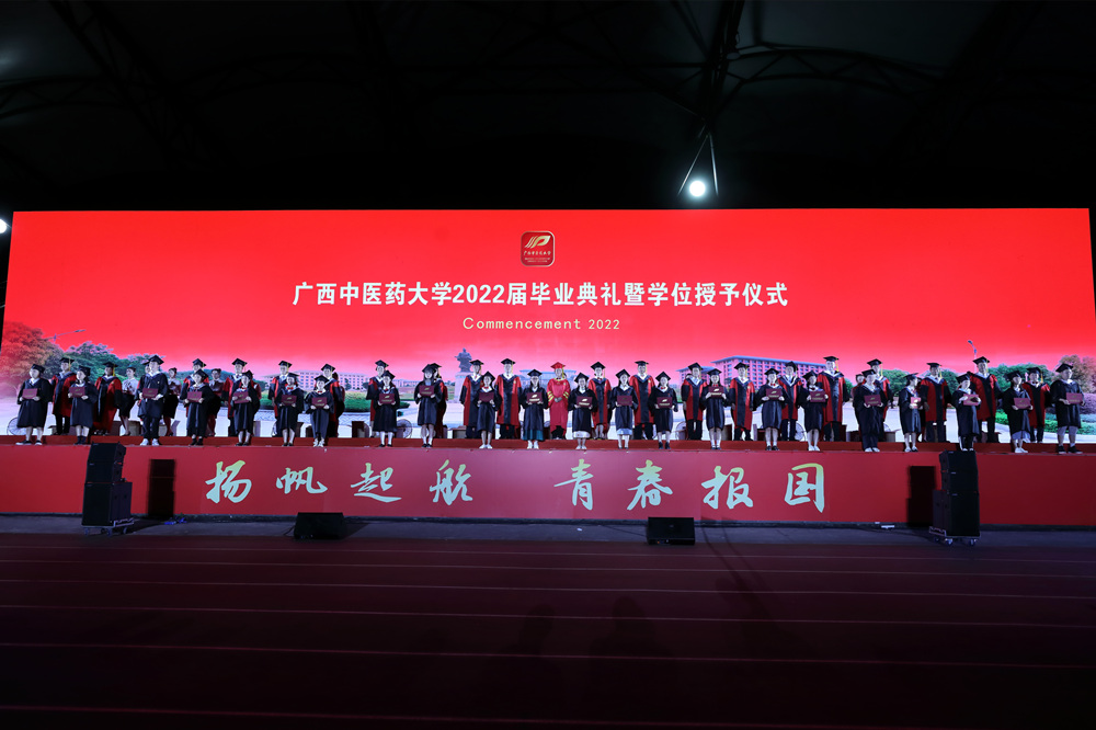 姚春以《胸怀壮志启新程,追光逐梦踏歌行》为题发表致辞,为2022届毕业生上了“最后一堂课”。姚春带领全体毕业生回顾了在桂中医共度的时光:这几年,我们欣逢盛世,共同礼赞党和国家百年芳华;这几年,我们步稳蹄疾,共同奏响学校发展时代强音;这几年,我们筑梦致远,共同实现大学青春精彩蝶变。“你们的支持理解和默默坚守是比‘诗与远方’更珍贵的情怀和担当,我为你们由衷地点赞!”对同学们在疫情防控中顾全大局、服从安排的表现,姚春给予了充分肯定。“艰难方显勇毅,磨砺始得玉成。当你们面对人生的千回百转和酸甜苦辣时,希望你们毫不畏惧面对一切艰难险阻,在劈波斩浪中砥砺奋进,在披荆斩棘中开辟天地,在攻坚克难中淬炼本领,做走在时代前列的奋进者、搏击者。”