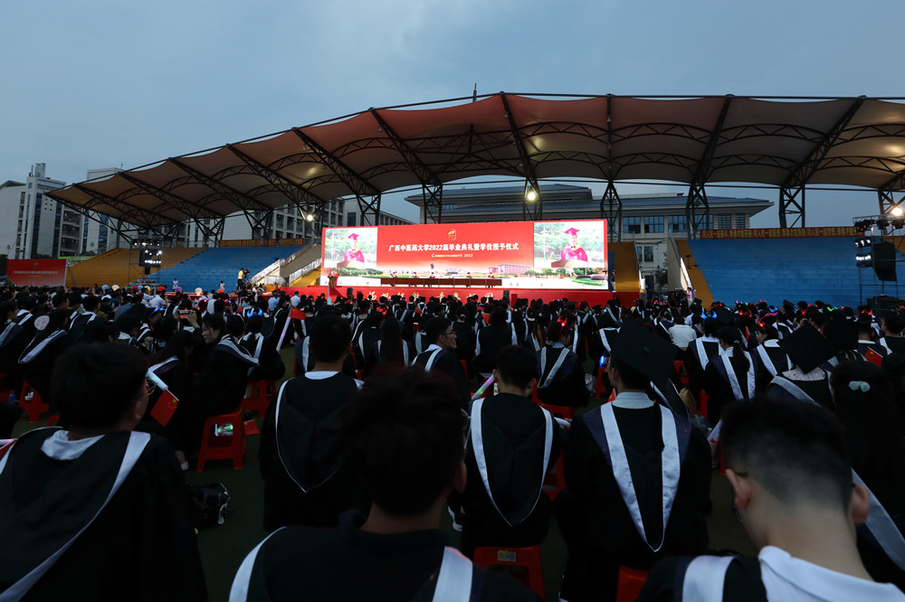 学校党委书记莫锦荣,党委副书记、校长姚春,党委副书记何并文,副校长冷静,纪委书记覃宇环,总会计师何刚亮出席典礼,全体2022届毕业生、各部门、各学院负责人、辅导员、教师代表等参加典礼。何并文主持毕业典礼。