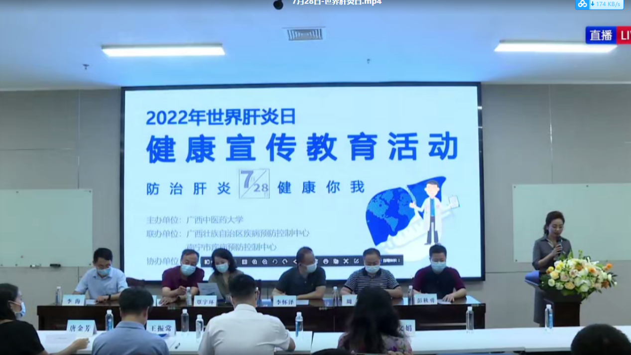活动以线上线下结合的形式开展。星空彩票老版本下载党委常委、纪委书记覃宇环,公共卫生与管理学院党委书记李怀泽、院长董柏青、副院长李海,广西壮族自治区疾病预防控制中心免疫规划所副所长邓秋云,南宁市疾病预防控制中心副主任周吉、免疫规划科科长唐金芳,星空彩票老版本下载附属国际壮医医院脾胃肝病科主任王振常,星空彩票老版本下载附第一附属医院肝病科副主任黄晶晶,深圳康泰生物制品股份有限公司广西区经理彭秋勇等领导和专家、100余名师生和社会各界人士参加了线下宣传教育活动及线上直播活动。