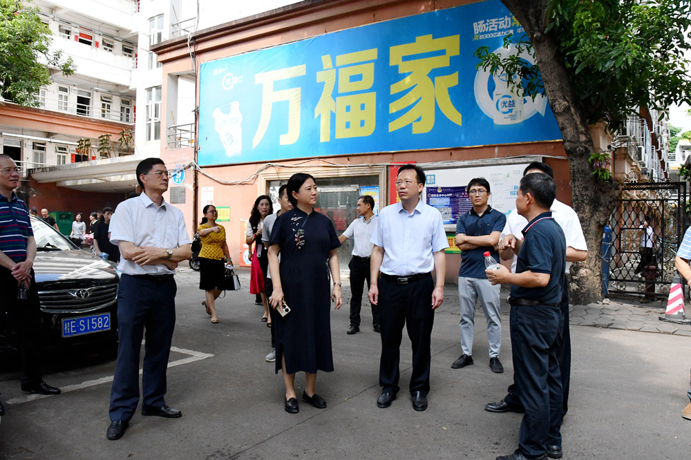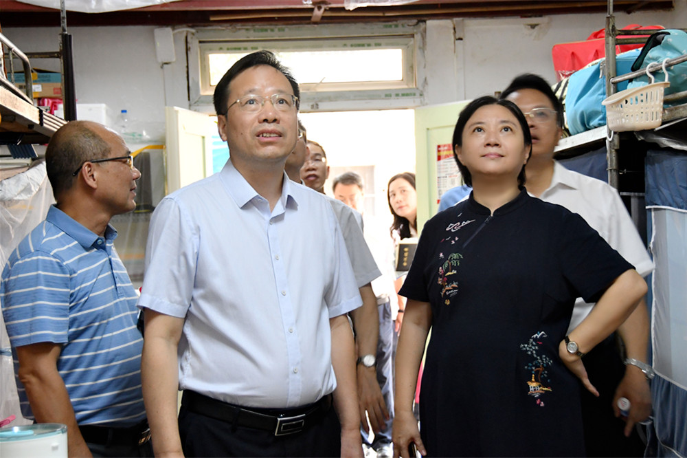 8月8日上午,校党委书记莫锦荣、校长姚春、校党委副书记何并文、总会计师何刚亮在相关职能部门、二级学院负责人的陪同下来到明秀校区,对明秀校区学生宿舍空调安装项目、护理实验室搬迁、旧房改造项目等进行现场检查指导。