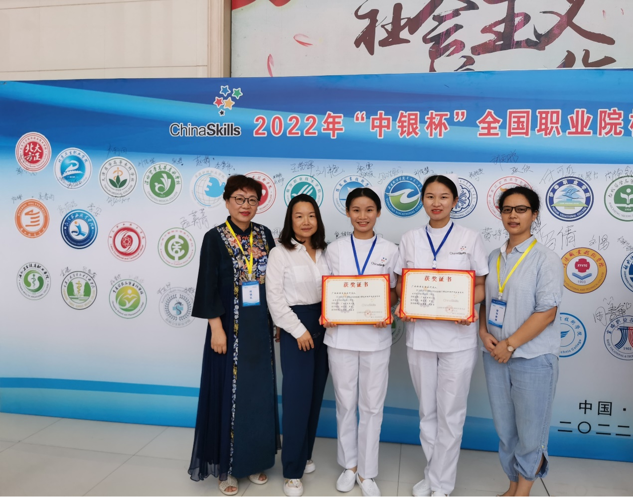 2022年8月17日至21日,2022年“中银杯”全国职业院校技能大赛高职组“护理技能”赛项在山东省济南市莱芜职业技术学院举行,我校2019级高职护理专业的韦倩和杨生兰同学代表广西壮族自治区参赛,韦倩和杨生兰同学努力拼搏、永不言败,从来自全国30个省、自治区、直辖市66所院校代表队的132名选手中脱颖而出,荣获团体三等奖,真正实现了用竞赛点亮人生,用技能成就梦想。为学校争光添彩,为广西的职业教育铸就辉煌。