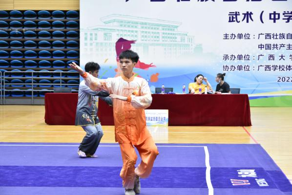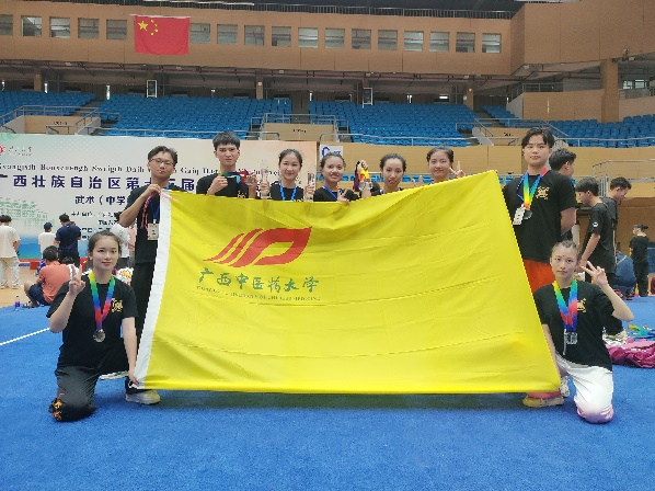 8月22-24日,广西壮族自治区第十三届学生运动会武术(中学组、大学组)比赛在广西大学综合体育馆举行,我校武术队在刘懿翀和陈桂真两位教练的带领下参加了普通本科组的比赛,在拳术、器械和男子、女子对练项目中与各校高手一较高下,最终经奋勇拼搏,我校共获1金2银5铜八枚奖牌及5个第四、5个第五、2个第六、3个第八的优异成绩,并力压广西医科大学、广西大学荣获普通本科组团体总分第一名,广西医科大学、广西大学位列第二、第三名,我校同时还荣获女子团体总分第一名。