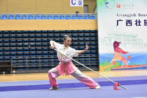 药学院覃雪玲获女子刀术银牌、女子棍术第四名、女子对练第八名;